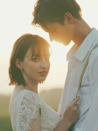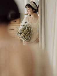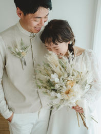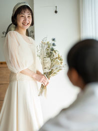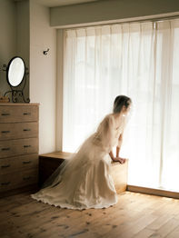 アンティークなものからシックなものまで揃えているドレスショップ。白を基調とした優しい室内で撮るフォトウェディングは、写真もふんわり優しい質感に。